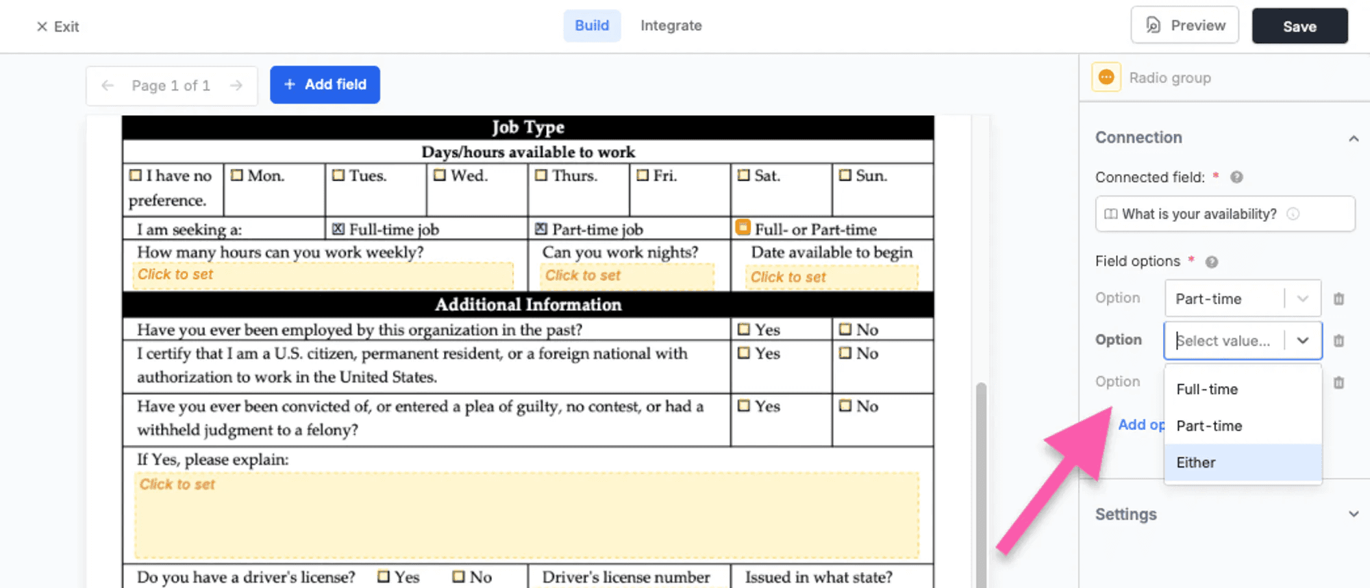 Mappez vos champs de formulaire à n'importe quelle partie du document.Vous pouvez même mapper des cases à cocher, des signatures et des champs sans question.