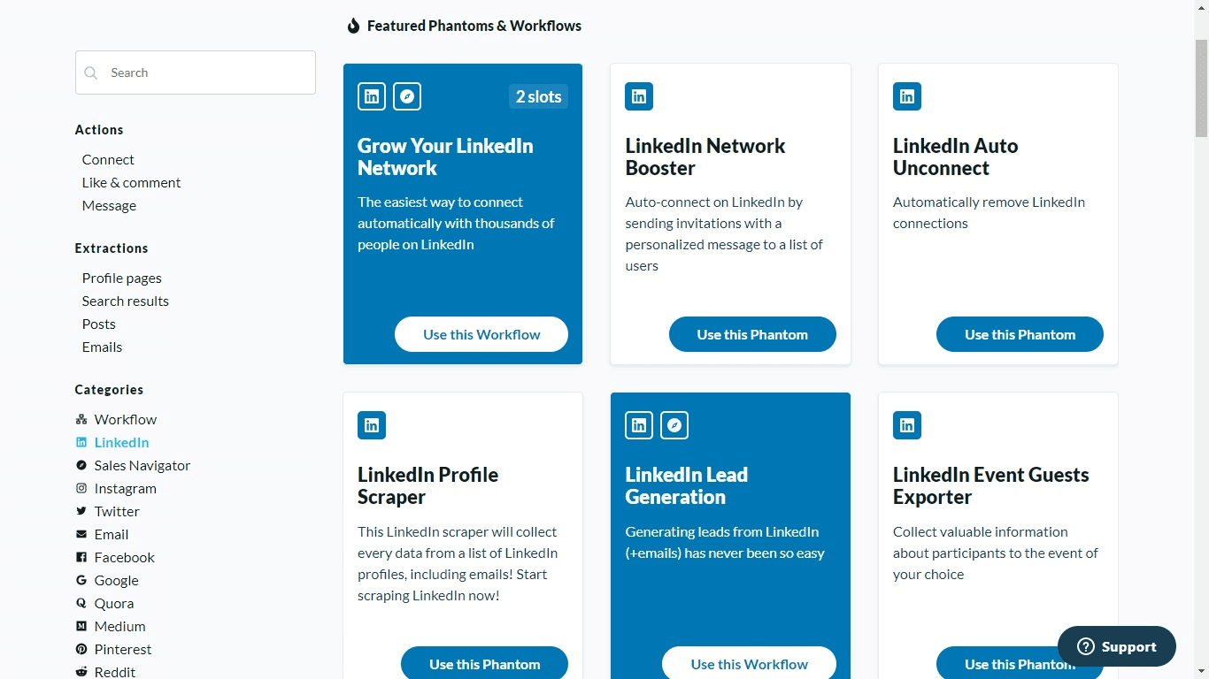 Avec ses "Phantoms" dédiés à la recherche d'informations sur une multitude de plateformes, de LinkedIn à TikTok, PhantomBuster vous permet d'accéder facilement à des données précieuses en quelques clics seulement. Que ce soit pour élargir votre audience, trouver l'inspiration pour votre contenu ou analyser la concurrence, cet outil offre une solution puissante et intuitive.